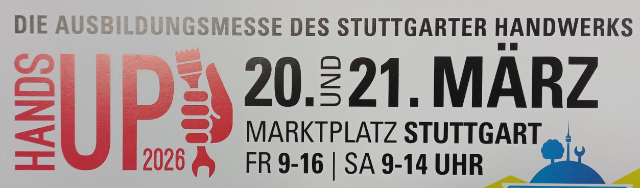 Knüpfe Kontakt zu einem Ausbildungsbetrieb auf der Ausbildungsmesse „HANDS UP“ am 20. und 21. März 2026 auf dem Stuttgarter Markplatz!
